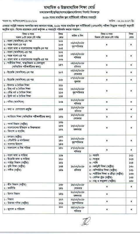 ২০১৮ সালের এসএসসি পরীক্ষার সময়সূচী