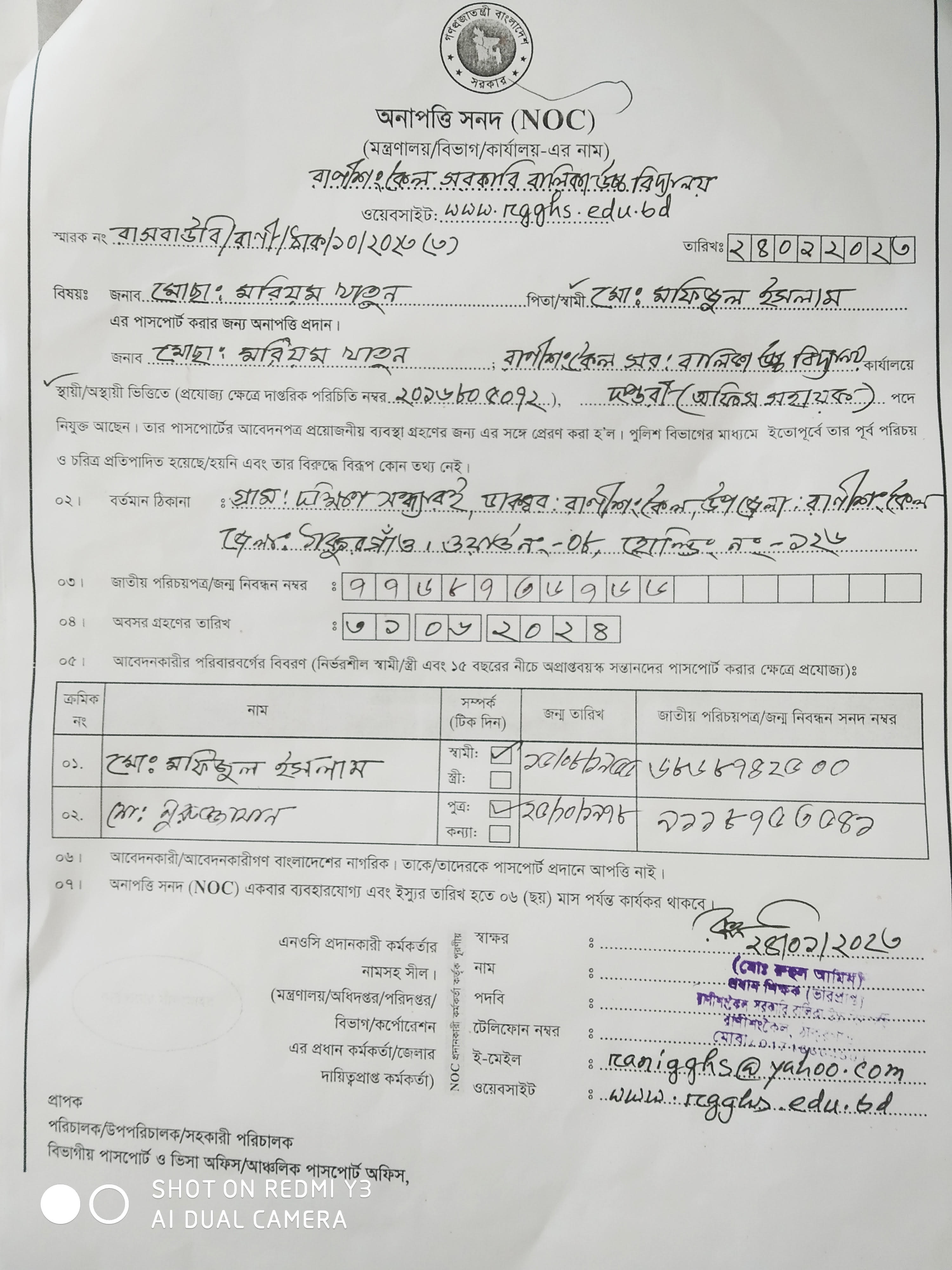 NOC- MORIOM KHATUN
