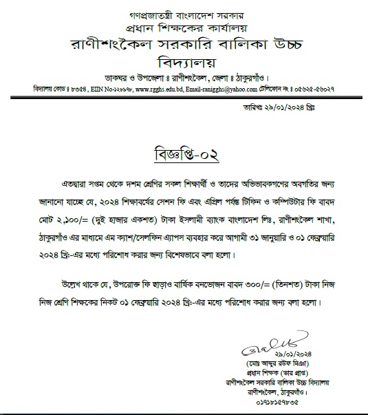 রাণীশংকৈল সরকারি বালিকা উচ্চ বিদ্যালয়ের সকল রেজাল্ট অনুসন্ধান